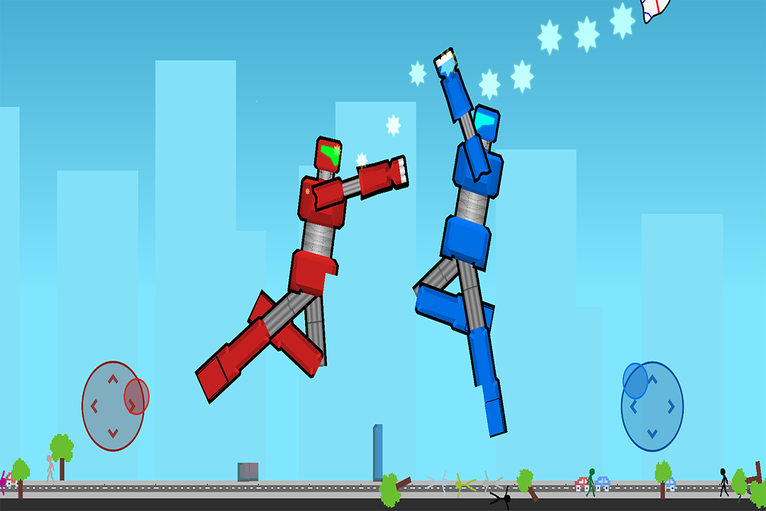 你能操控由火柴人驾驶的巨型强力机器人,与朋友在同一设备上展开刺激的本地多人对战。无论用触摸屏还是外接控制器,简单直观的操作让你时刻主宰战局。 游戏里,史诗战斗在可破坏环境中打响。你可巧用周边环境及各类道具,像将对手抛向空中制造破坏,或借助导弹、抓钩等增强武器扭转乾坤。还能通过多种选项自定义机器人,改变颜色、添加增强功能,打造专属风格。点击开始,体验热血对战,展现你的战略实力!