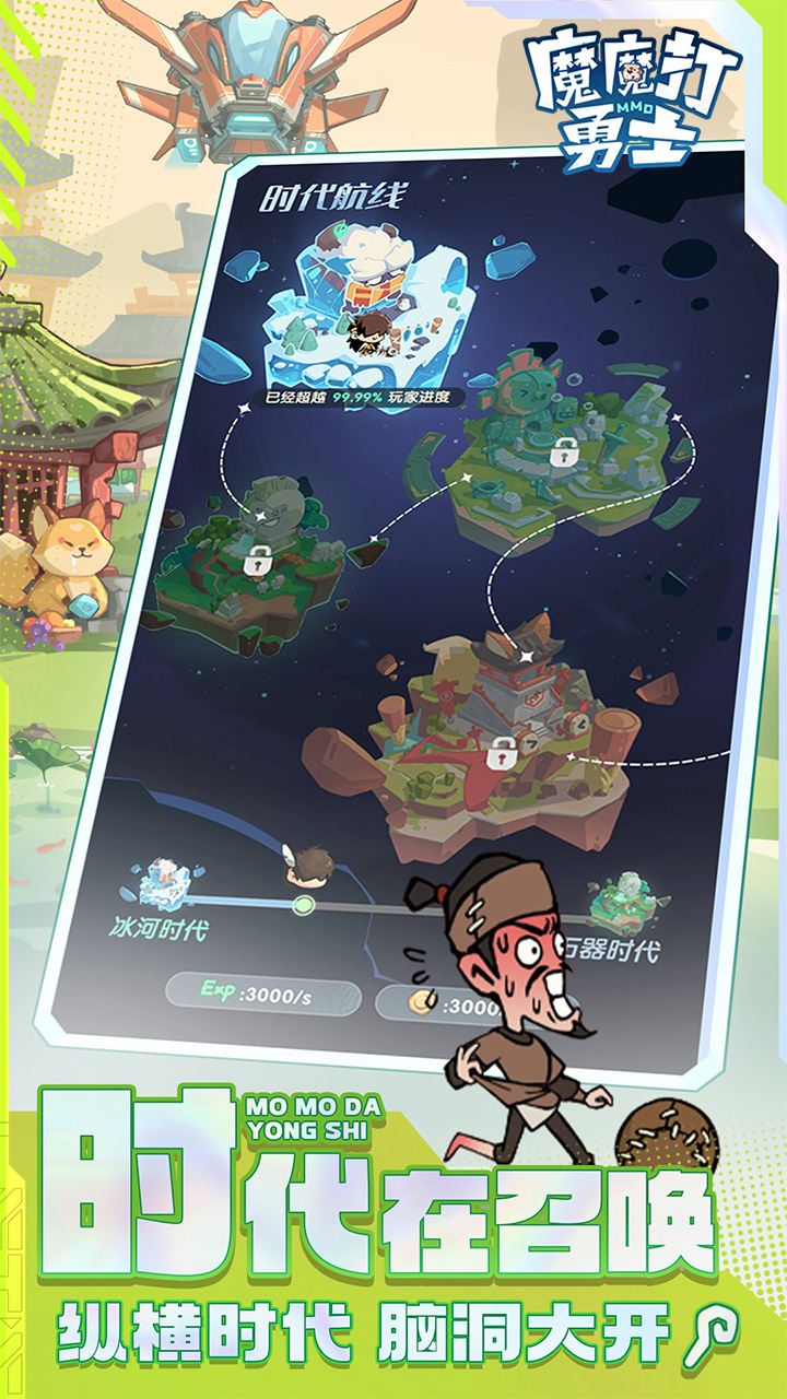 《魔魔打勇士》百万年后,末日降临,地鼠成为唯一幸存的族群。好在他们拥有穿梭时空的飞船,能够回到过去找到天选之人,改变地球末日的厄运!“鼠鼠我啊,可终于找到你啦!”嗯……传说中的最强人类,怎么在玩泥巴?!开局一根破树枝,你要我拯救地球?【时代进阶 由你主宰】沿循人类文明的发展轨迹,修复飞艇完成时空穿梭!一刻也没有在冰河时代多停留,下一个战场是……【轻松策略 绝不烧脑】花式装备补给,古今中外的伙伴,魔性技能,晶核加点,助你越变越强!多维养成,尽享不同时代的科技与狠活!【躺平发育 放置挂机】轻松点击,解放双手,离线挂机领取经验奖励,上线打开新世界!眼睛一闭一睁,一个时代过去了!【丰富玩法 魔性解压】探秘矿洞,牧场经营,与好友组建营地,一起嗨翻天!给他一个铲子,指不准能挖穿地球!