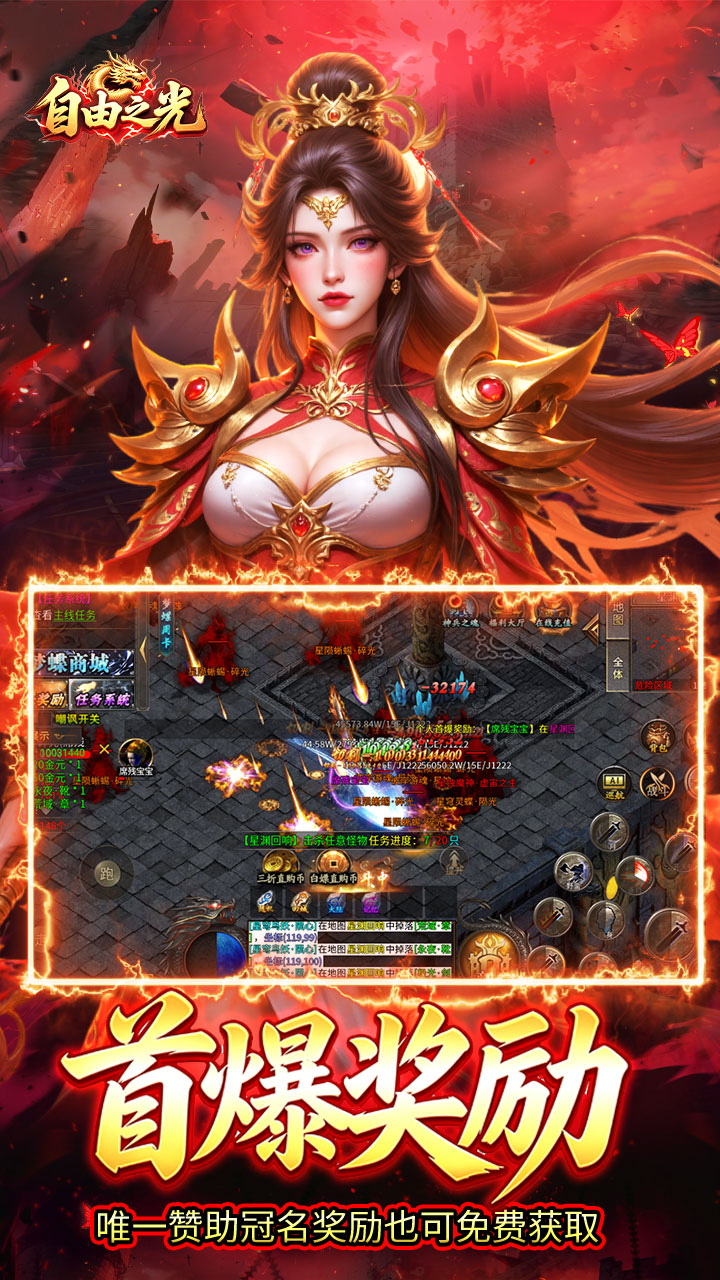 《自由之光》创角即送自动回收,自动拾取,每日赠送328红包.参与跨服趣味玩法,散人玩家也能在活动中获得巨大收益.全民白嫖,各种在线奖励,首爆奖励,保值回收大额元宝,装备全靠打,材料全靠爆,时间等于一切,白嫖照样毕业