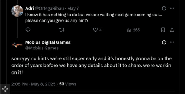 此外,工作室还回应了关于新作的询问,在社交平台X上表示:“我们目前的新项目仍处于早期开发阶段,距离能够公开更多细节还需要一些时间。