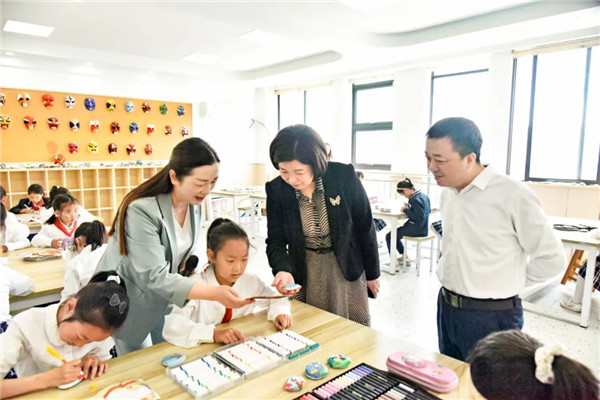 考察活动首先来到实验小学教育集团北街北校区,考察组对学校的办学特色进行了实地调研。在学校的童心广场和德育大厅等育人阵地,考察团详细了解了学校在校园文化建设方面的具体举措,感受到了浓厚的文化氛围。