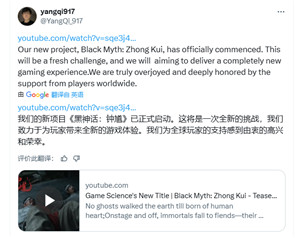 在这次公开宣布后,黑神话系列的创始人杨奇也通过社交平台发布了对全球玩家的感谢推文。他表示:“我们的新项目黑神话钟馗已正式启动。这将是一次全新的挑战,我们致力于为玩家带来全新的游戏体验。我们为全球玩家的支持感到由衷的高兴和荣幸。”他的话语中充满了感激与信心,也暗示着这款新作将会带来与黑神话悟空截然不同的游戏体验,承载着更高的挑战。