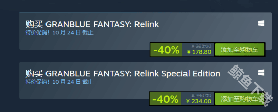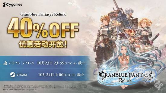 碧蓝幻想:Relink从10月10日(周四)到10月23日(周二)现实享受6折的优惠,目前游戏的标准版、特别版、数字豪华版都可享受这一次的折扣活动,感兴趣的玩家千万不要错过这次优惠促销的机会。