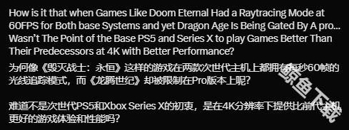 这一消息在国外社交媒体引起热议,玩家们吐槽现在的主机游戏好像仅仅是在堆料,根本不再考虑优化。与其为了更好体验不断购买昂贵的新主机,还不如去PC平台上玩。