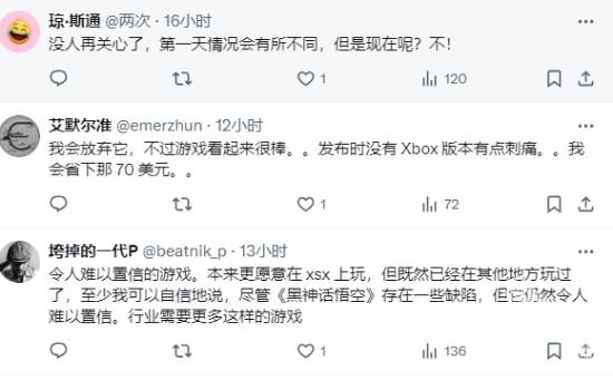 不过,更多的玩家表示不论如何都不会在Xbox上游玩本作:一是Xbox方面此前就游戏延期的说辞被广泛质疑(《博德3》也曾出现类似情况);二是很多人其实已经在PC、PS5上玩完了,现在把Xbox版本端上来有点晚了……