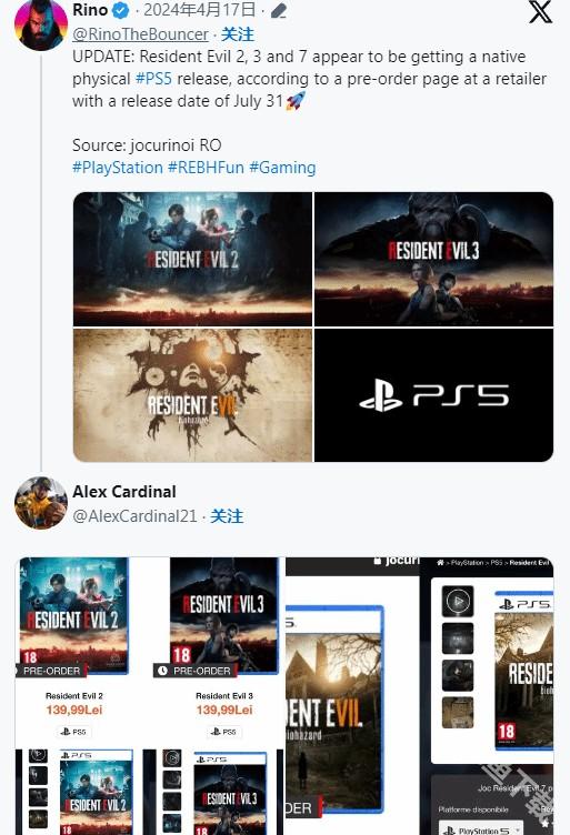据国外玩家@hybroid爆料,卡普空《生化危机2重制版》《生化危机3重制版》以及《生化危机7》的PS5实体版本的销售信息在一家位于澳大利亚的零售商出现。据称,PS5实体版将于2024年12月6日开启预购,每份价格为49澳元(约合人民币233元)。