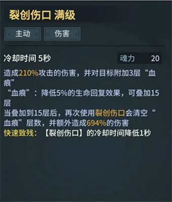 2、搭配二:濒死复生 + 嗜血追击 + 裂创伤口 + 百刃连闪