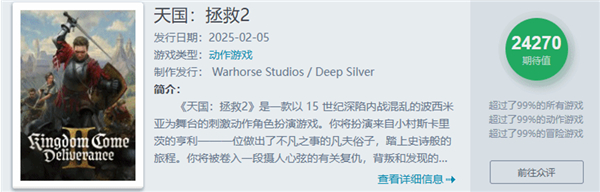 天国:拯救的续集也将在同月亮相,这款结合了史诗剧情和高度真实的中世纪世界的游戏,凭借其精致的细节和沉浸式体验吸引了大批粉丝。作为一款开放世界角色扮演游戏,天国:拯救2无疑是2月的另一大亮点,它的发售无疑将与《怪物猎人:荒野》产生直接的市场碰撞。