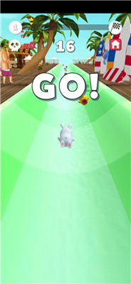 选择好皮肤后,准备进入游戏。游戏开始时,玩家将控制角色在水上滑道上与其他玩家竞争。