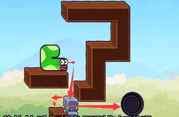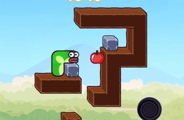 1. 首先,移动贪吃蛇,通过灵活操作,利用左侧的石头和苹果的互动,将右侧的石头推下去,然后吃掉苹果。注意,控制蛇的方向和姿势,确保石头能够顺利落下,并且尽量避免与其他障碍物碰撞。
